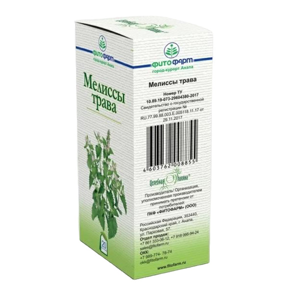 Мелиссы трава, 1,5 г, 20 шт, сырье-порошок
