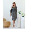 Стильное платье полуприлегающего силуэта из трикотажного полотна серо-бежевого цвета. Платье с отложным воротником, верхняя часть переда дополнена планкой с застежкой на пуговицы. Втачные рукава обработаны манжетами. Ремень в комплект не входит. Длина изделия по спинке от плечевого шва до низа изделия - 102 см. Рост фотомодели — 170 см.