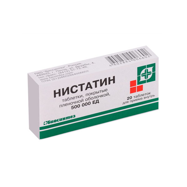 Нистатин 500000 ЕД, 20 шт, таблетки покрытые оболочкой