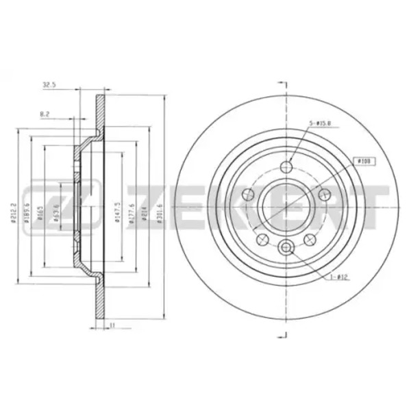 Тормозной диск ZEKKERT BS-5844 полный задняя ось