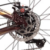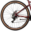 Женский горный велосипед с оборудованием начального класса Shimano, 14 скоростей. Технические особенности: легкая алюминиевая рама (сплав 6061-T6, полуинтегрированная рулевая колонка, кареточный стакан BSA, частично скрытая прокладка тросов, съёмный петух), амортизационная вилка STG Spice (пружинная, ход 110 мм, регулировка преднатяга пружины), двойные алюминиевые обода Felgebeiter VB-18 (под AV ниппель), дисковые механические тормоза STG (роторы 160/160 мм с креплением на 6 болтов), защита цепи, подножка. Подходит для активной езды по различным дорогам и пересеченной местности. Диаметр колес - 27,5 дюймов. Вес - 15,1 кг.