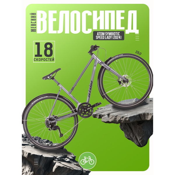 Женский велосипед Atom Symbiotic Speed Lady, год 2024, цвет Серый, ростовка 20