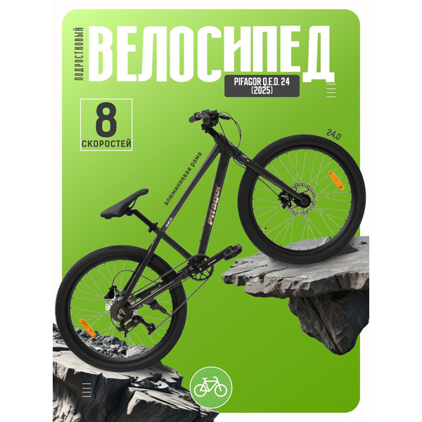 Подростковый велосипед Pifagor Q.E.D. 24, год 2025, цвет Черный