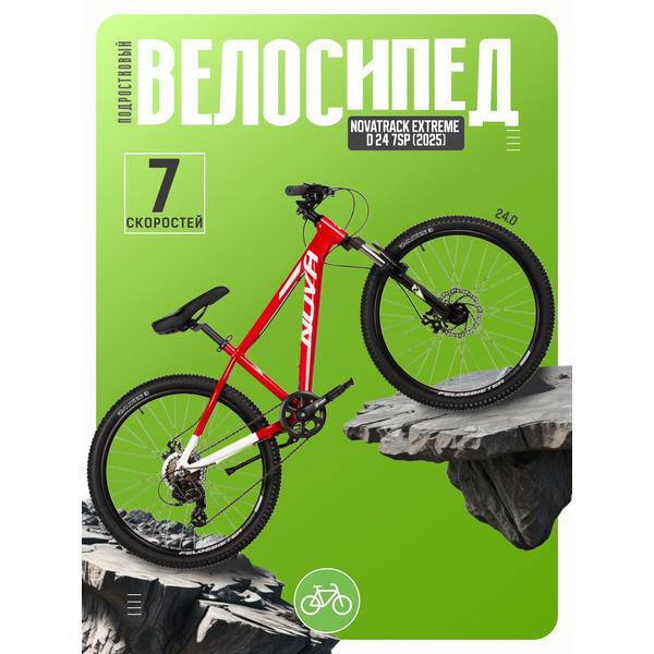 Подростковый велосипед Novatrack Extreme D 24 7sp, год 2025, цвет Красный, ростовка 13