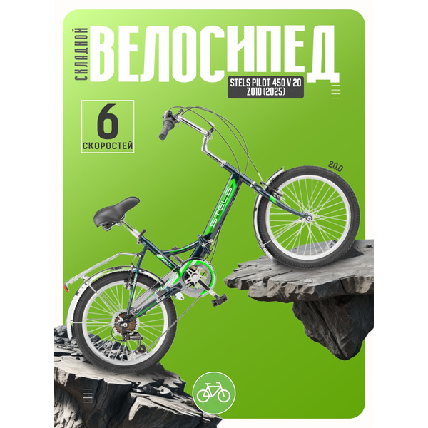 Складной велосипед Stels Pilot 450 V 20 Z010, год 2025, цвет Синий-Зеленый, ростовка 13