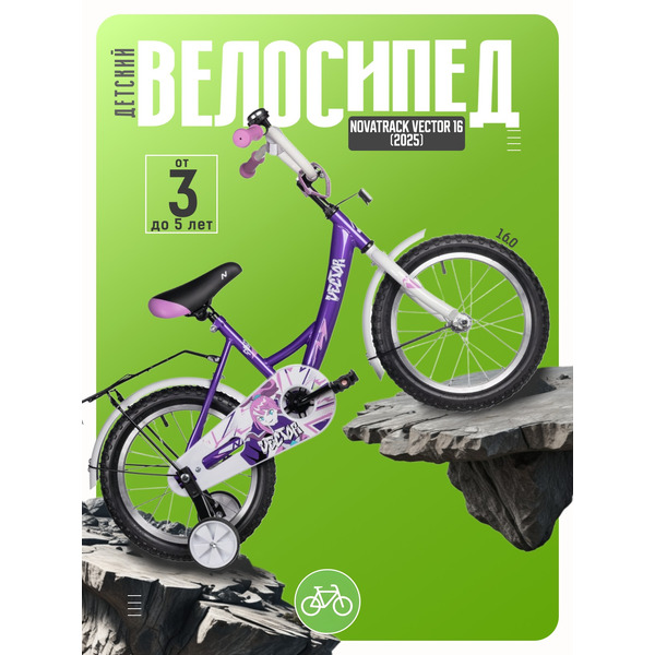 Детский велосипед Novatrack Vector 16, год 2025, цвет Фиолетовый