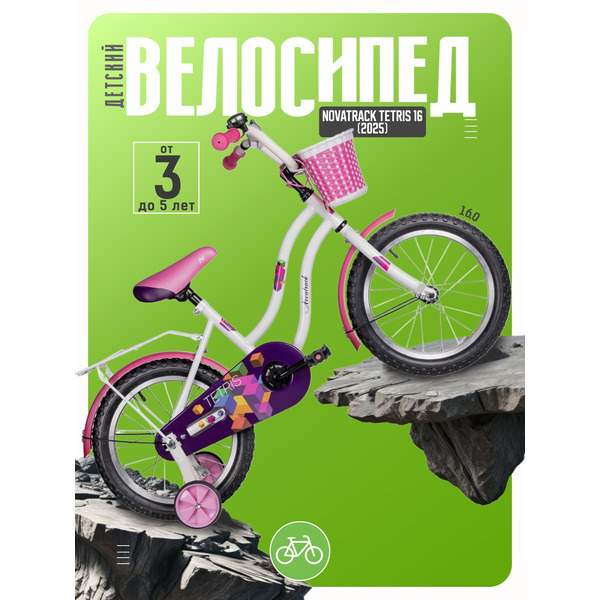 Детский велосипед Novatrack Tetris 16, год 2025, цвет Белый