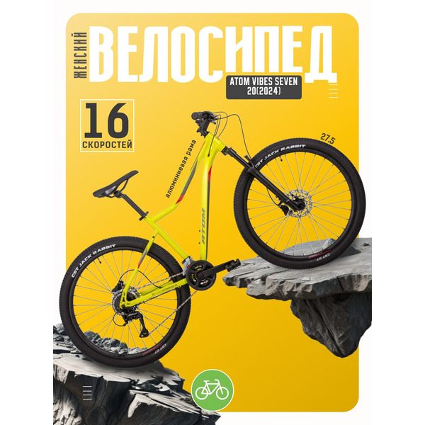 Женский велосипед Atom Vibes Seven 20, год 2024, цвет Зеленый, ростовка 15
