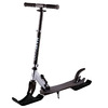 Складной двухколесный, полиуретановые колеса (диаметр 200 мм), подшиники ABEC 7, регулируемый по высоте руль (87-97 см), складные ручки с фиксаторами, дека с антискользящим покрытием, складная подножка, задний тормоз, лыжи в комплекте