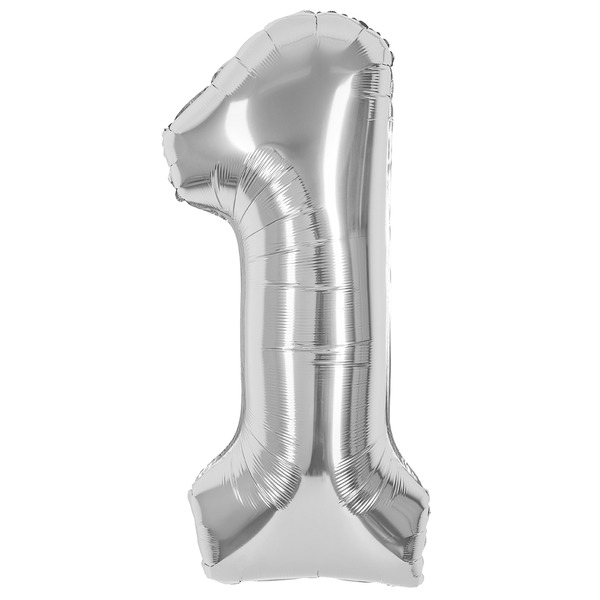 Шар (40"/102 см) Цифра, 1, Серебро, Металлик, 1 шт. в уп.
