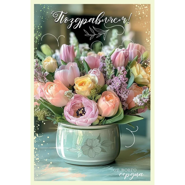 Открытка, Поздравляем! От всего сердца (цветы), 12,2*18,2 см, 10 шт.