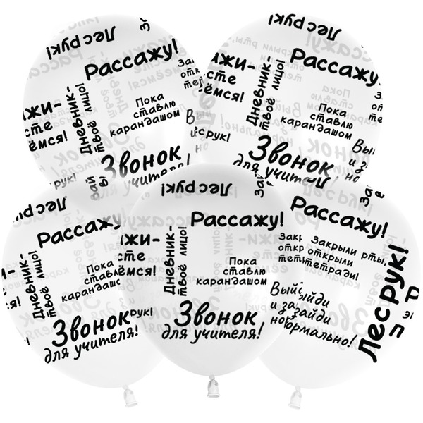 Шар (12"/30 см) Школьные цитаты, Прозрачный, кристалл, 5 ст, 25 шт.