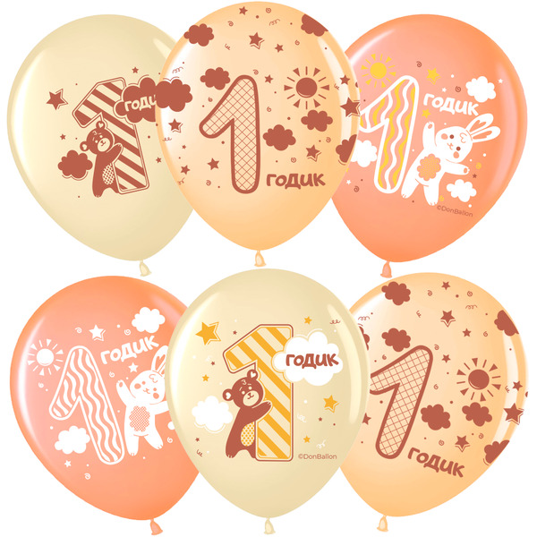 Шар (12"/30 см) 1 Годик, Ассорти, пастель, 5 ст, 25 шт.