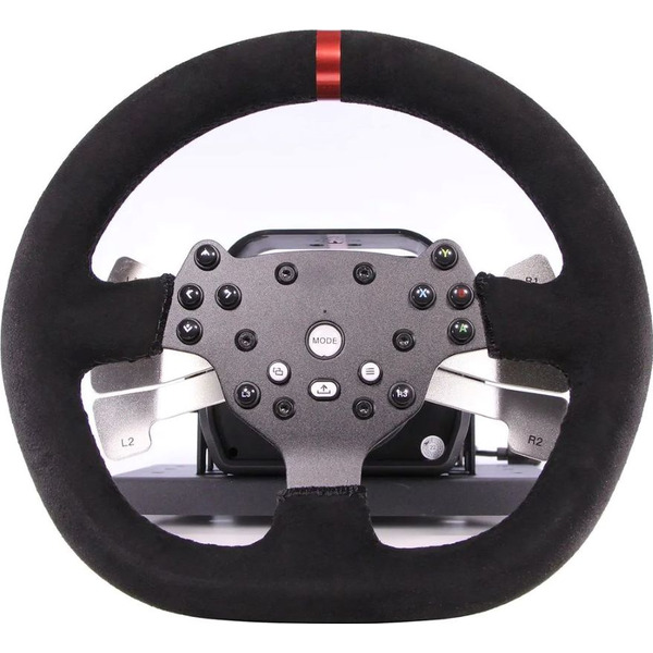 Руль имеет угол поворота до 900°, обеспечивая широкий диапазон движения. Обратная связь обеспечивается двумя моторами мощностью 3,2 Nm, что позволяет чувствовать реалистичные вибрации и сопротивление.