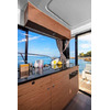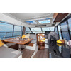 • U-образный салон кокпита + стол + расширение палубы для загара включает: дополнительная скамья за раздвижной кормовой дверью, трансформируемая стандартный L-образный салон в U-образный салон кокпита, тиковый стол, подушки на площадку для загара, рама для организации санпада