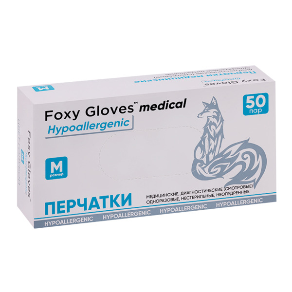 Перчатки Foxy Gloves диагностич нитрил/нестер/неопудр пара р М, 50 шт, голубые