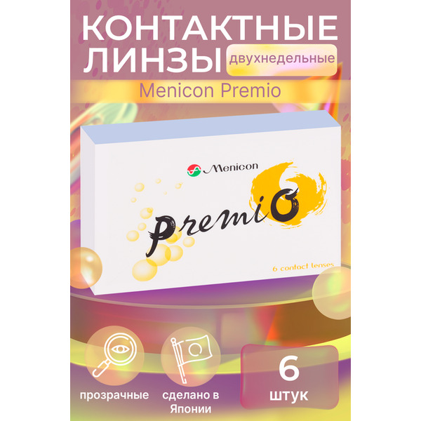 Линзы Menicon Premio контактные R 8.6 (диоптрия -12,00), 6 шт
