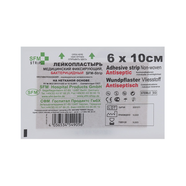 Лейкопластырь SFM-Strip бактер/мед/фиксир нетканая основа 6х10 см