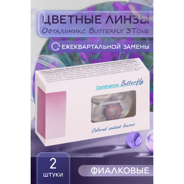 Линзы Офтальмикс Butterfly 3Т Violet контактные R 8.6 (диоптрия -6,0), 2 шт