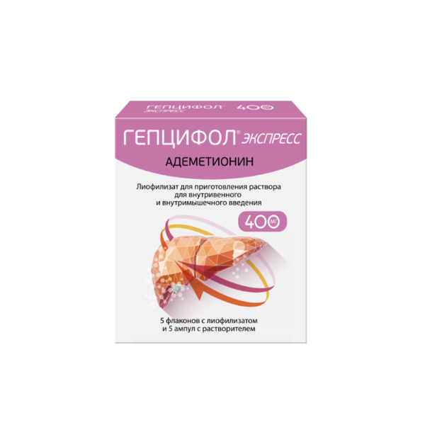 Гепцифол экспресс 400 мг, 760 мг, 5 шт, лиофилизат для приготовления раствора для внутривенного и внутримышечного введения