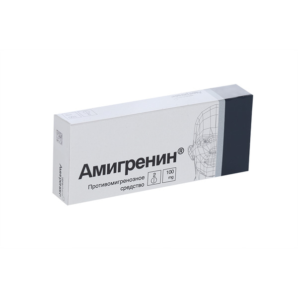Амигренин 100 мг, 2 шт, таблетки покрытые пленочной оболочкой