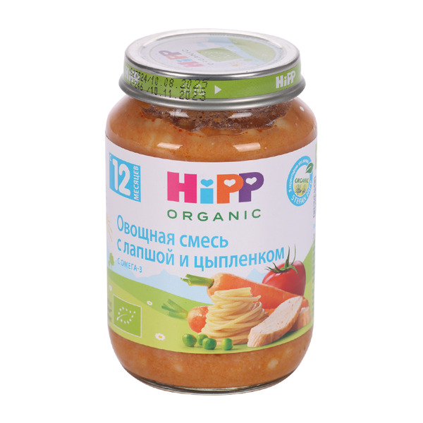 Пюре Хипп Овощная смесь с лапшой и цыпленком, 190 г