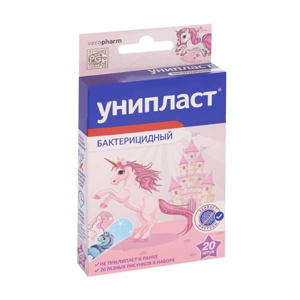 Набор лейкопластырей Унипласт Единорог бактерицид, 20 шт
