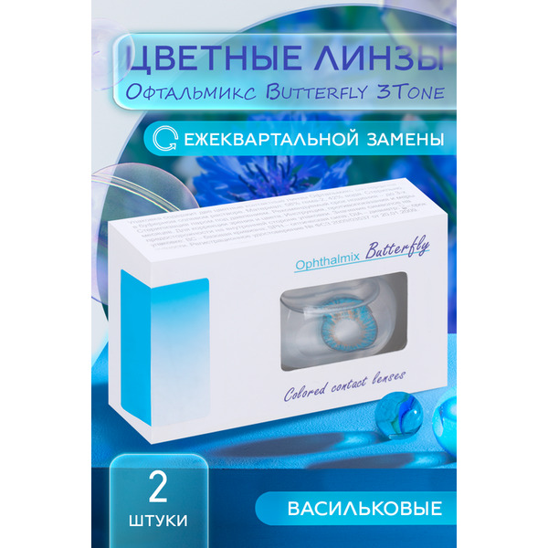 Линзы Офтальмикс Butterfly 3Т Aqua/Aqua Blue контактные R 8.6 (диоптрия -0,5), 2 шт