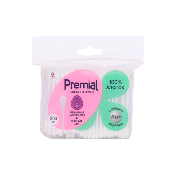 Ватные палочки Премиал с ионами серебра, 200 шт, пакет