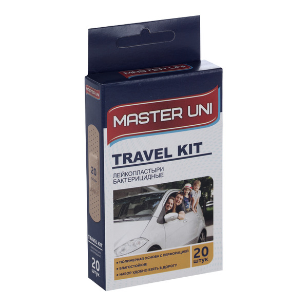 Пластырь Мастер Юни Трэвел Кит бактериц на полимерн основе, 20 шт