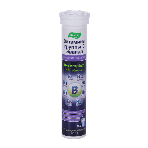 Витамины группы В, 5 г, 15 шт, таблетки шипучие Эвалар