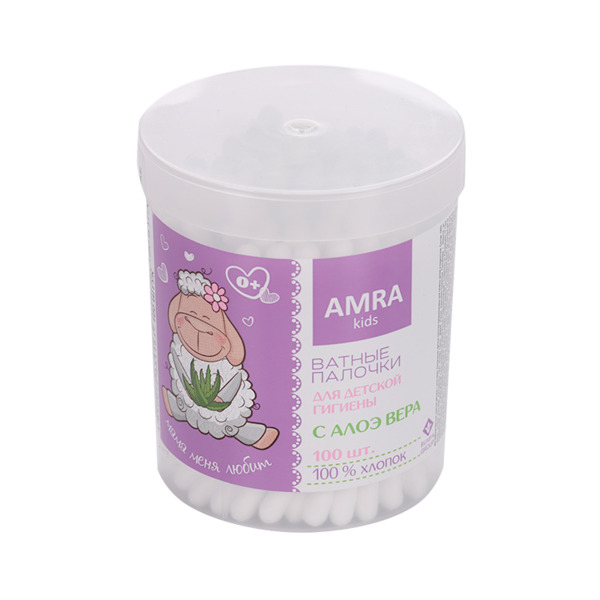 Ватные палочки Амра д/детей с алоэ-вера, 100 шт, (цилиндр)