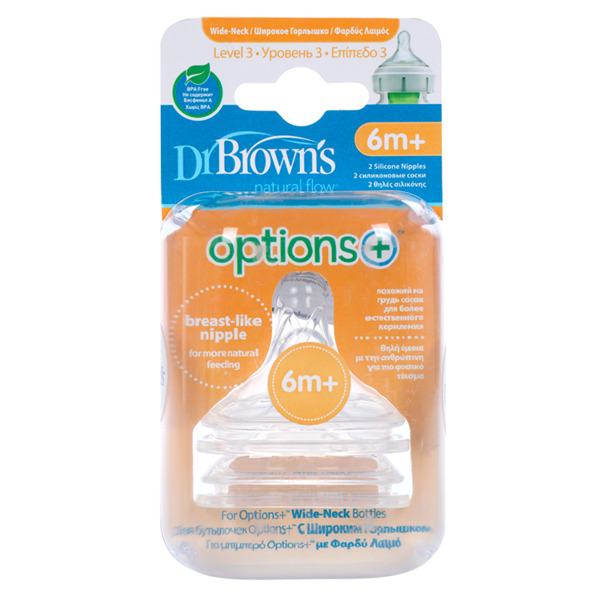 Соска Др Браун Опшенс + широкое горлышко силиконовая (с 6 мес), 2 шт
