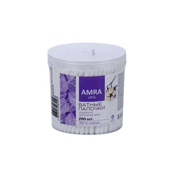 Ватные палочки Амра, 200 шт, (цилиндр)