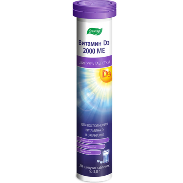 Витамин Д3 2000 МЕ, 3,8 г, 20 шт, таблетки шипучие