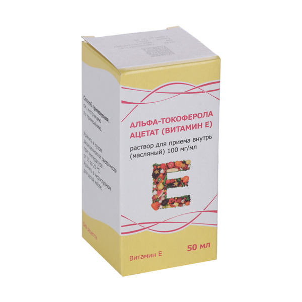 альфа-Токоферола ацетат (витамин Е) 100 мг/мл, 50 мл, раствор для приема внутрь масляный