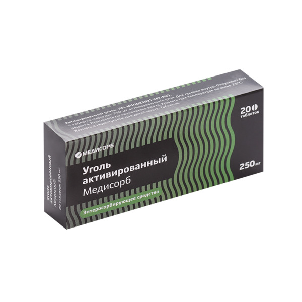 Уголь активированный Медисорб 250 мг, 20 шт, таблетки