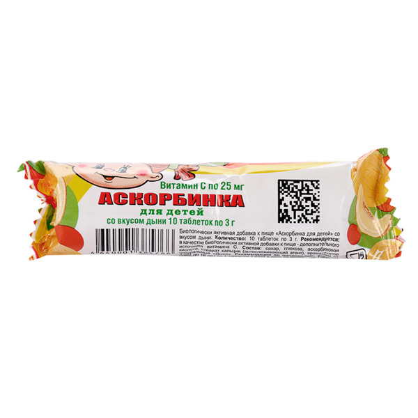 Аскорбинка со вкусом дыни, 3 г, 10 шт, таблетки