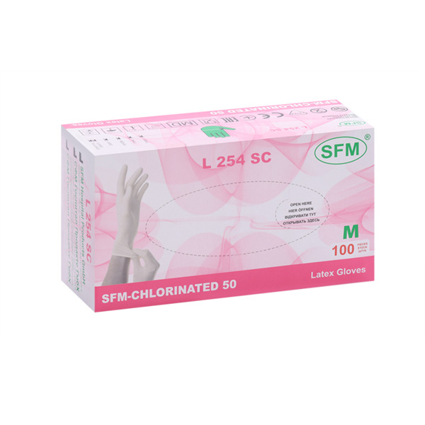 Перчатки SFM LATEX GLOVES смотр/латекс/нестерил/неопудр р M, 50 шт, пара цв натуральный