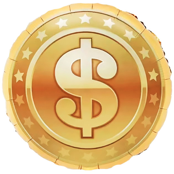 Шар (18"/46 см) Круг, Знак Доллара, Золото, 1 шт.