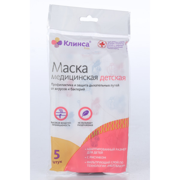 Маска Клинса н/стер мед однораз 3-х слойн дет с рисунком 12 см х 9 см, 5 шт