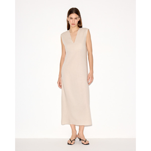 Длинное прямое платье без рукавов с V-вырезом, из тенселя, бежевый