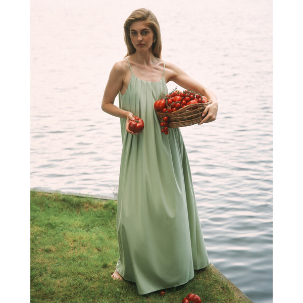 Платье сарафан на бретелях, длины макси, из бамбука, светло-зеленый