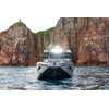 Моторы общей мощностью до 900 л.с. обеспечат этому брутальному спортивному катеру высокую скорость.