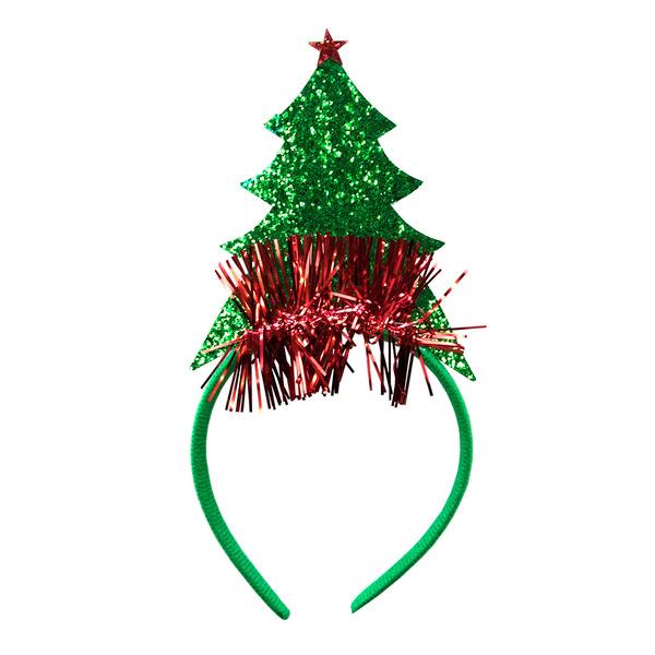 Ободок, Новогодняя елочка, Зеленый/Красный, с блестками, 1 шт.