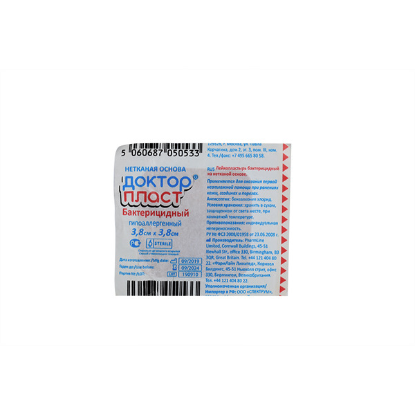 Пластырь Доктор Пласт бактериц 3.8х3.8 см, неткан осн