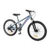 Велосипед, предназначенный для детей в возрасте от восьми до тринадцати лет, с оборудованием начального любительского класса Shimano, 8 скоростей. Технические особенности: легкая алюминиевая рама (сплав 6061, частично скрытая проводка, кареточный стакан BSA, крепление калипера IS, съемный петух, бонки для багажника и флягодержателя), амортизационная вилка (пружинная, ход 50 мм, крепление калипера Post Mount, блокировка, регулировка преднагрузки), двойные алюминиевые обода (под AV ниппель), дисковые механические тормоза (роторы 160/160 мм), защита цепи, подножка, катафоты. Подходит для прогулочного катания в городских условиях и по несложным маршрутам в лесу. Диаметр колес - 24 дюйма. Вес - 12 кг.