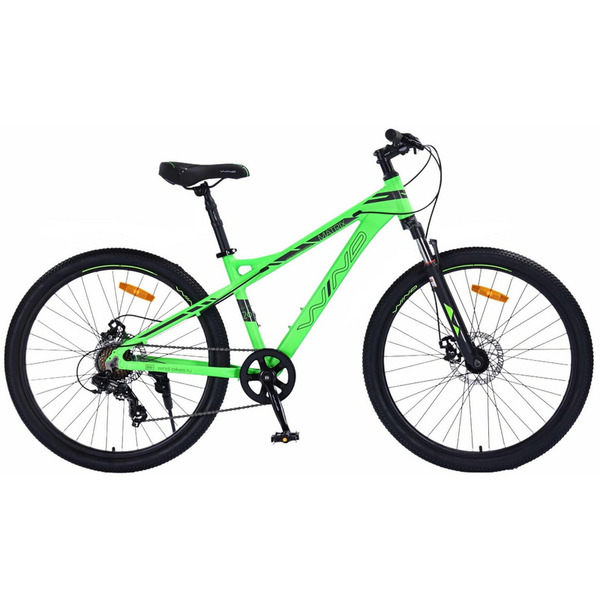 Горный велосипед для подростков с оборудованием начального класса Shimano, 7 скоростей. Технические особенности: легкая алюминиевая рама (сплав 6061, частично скрытая проводка, кареточный стакан BSA, крепление калипера IS, съемный петух, бонки для флягодержателя), амортизационная вилка (пружинная, ход 60 мм, крепление калипера IS), двойные алюминиевые обода (под AV ниппель), дисковые механические тормоза (роторы 160/160 мм), защита цепи, подножка, катафоты. Подходит для прогулочного катания в городских условиях и по несложным маршрутам в лесу. Диаметр колес - 26 дюймов. Вес - 14 кг.