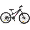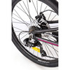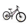 Велосипед, предназначенный для девочек в возрасте от восьми до тринадцати лет, с оборудованием начального класса Shimano, 7 скоростей. Технические особенности: легкая алюминиевая рама (сплав 6061, частично скрытая проводка, кареточный стакан BSA, крепление калипера IS, съемный петух, бонки для багажника и флягодержателя), амортизационная вилка (пружинная, ход 50 мм, крепление калипера IS), двойные алюминиевые обода (под AV ниппель), дисковые механические тормоза (роторы 160/160 мм), защита цепи, подножка, катафоты. Подходит для прогулочного катания в городских условиях и по несложным маршрутам в лесу. Диаметр колес - 24 дюйма. Вес - 13 кг.