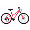 Велосипед, предназначенный для девушек в возрасте от восьми до тринадцати лет, с оборудованием начального класса Shimano, 7 скоростей. Технические особенности: легкая алюминиевая рама (сплав 6061, частично скрытая проводка, кареточный стакан BSA, крепление калипера IS, съемный петух, бонки для багажника и флягодержателя), амортизационная вилка (пружинная, ход 50 мм, крепление калипера IS), двойные алюминиевые обода (под AV ниппель), дисковые механические тормоза (роторы 160/160 мм), защита цепи, подножка, катафоты. Подходит для прогулочного катания в городских условиях и по несложным маршрутам в лесу. Диаметр колес - 26 дюймов. Вес - 14 кг.